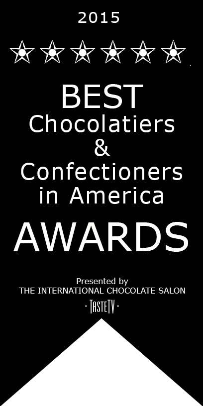 The International Chocolate Salon Awards for the Best Chocolatiers and Confectioners in America are based on the combined total number of Gold and Silver Awards received by each entrant in the 2015 TasteTV Chocolate Salons in San Francisco, Los Angeles, Seattle, and Fall (SF) and standalone Chocolate Salon Award Competitions for Best Caramels, Toffees, Bars, Truffles, White Chocolate, Chefs Roundtable, and Best Bridal Chocolates. This is the highest honor only given to 12 out of 91 total award recipients. CLICK HERE to see complete list of winners.