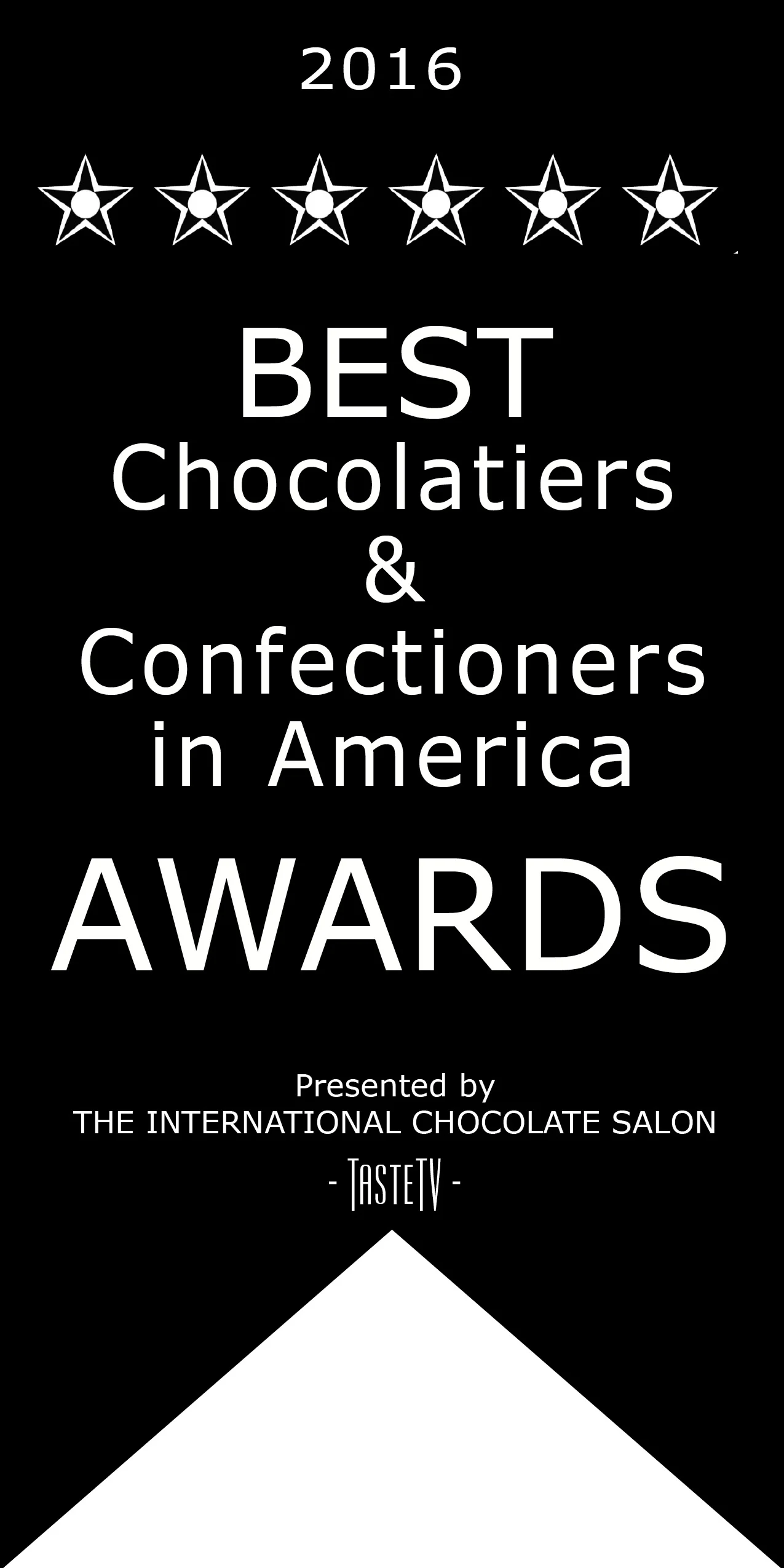 2016 SIX STAR GRAND MASTER AWARD for BEST CHOCOLATIERS & CONFECTIONERS in AMERICA by THE INTERNATIONAL CHOCOLATE SALON & TASTE TV